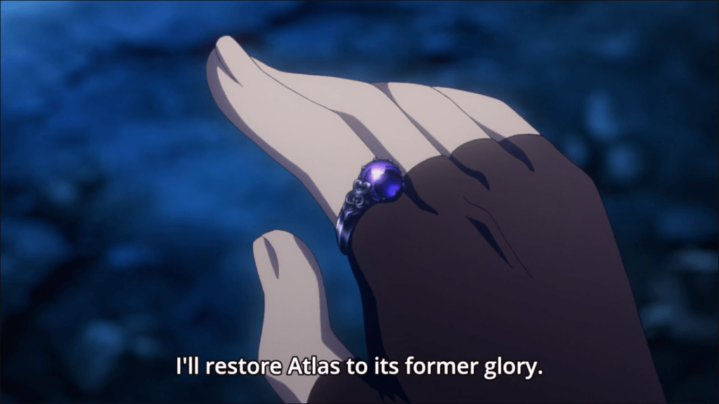 Un buon villain può davvero fare la differenza in qualsiasi prodotto, elevando la storia o affondandola, e mi dispiace dire che in questo caso ci troviamo decisamente nella seconda categoria. Gli antagonisti sono avvolti nel mistero fino agli ultimi episodi, cosa che mi aveva resa carica di aspettative e davvero incuriosita su come si sarebbero evoluti gli eventi. Si viene invece a scoprire che il cattivo il quale fino a quel momento aveva fatto il lavoro sporco, Kegaremaru, è solo un’estensione del reale cattivo, Setique, una personificazione dell’oscurità del suo animo; ma se è così, allora perché anche Setique continua comunque a essere cattivo? Kegaremaru è l’unico personaggio forse realmente ben costruito: vuole semplicemente il caos, vive per divertirsi e intrattenersi, senza nessuna morale, con il solo obiettivo di godersi il tempo che ha a disposizione; per questo sopporta i monologhi e le scariche di rabbia di Setique: spera che alla fine della storia ci sarà un risvolto intrigante, che possa soddisfarlo, come un finale ben scritto di un film. Grazie alla fantasmagorica forza dell’amore, Setique passa dall’essere uno psicopatico che è rimasto così traumatizzato dalla morte del re di Atlas, suo carissimo amico, da desiderare la vita del figlio (Kihel) per riportarlo in vita, a diventare nuovamente l’uomo buono e giusto che era quando il compagno era ancora vivo, Kegaremaru è giustamente seccato, poiché si aspettava sangue e fuoco e si è invece ritrovato un lieto fine. Se ci si fosse concentrati maggiormente sul conflitto tra Kegaremaru e Setique e se si fosse resa meno blanda, scontata e veloce la redenzione di quest’ultimo, rendendo anche più chiaro come mai avesse lasciato fuggire Kihel in primo luogo, visto che poi ha cercato con tutte le sue forze di riportarlo ad Atlas, sarebbe potuta essere una storyline interessante. Anche il senso di colpa che Kihel provava verso di lui non è del tutto giustificato: la volontà di riportare in via il padre è lecita, come anche il pensiero di voler morire per averlo condotto, inconsapevolmente, verso la sua fine, ma il modo in cui si è consegnato a Setique, senza fiatare, pur sapendo che quest’ultimo non aveva fatto altro che usarlo, nel nome di bei ricordi che però hanno un significato diverso rispetto a ciò che credeva lui, è stato un po’ strano.